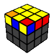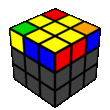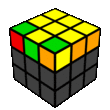 En aquesta etapa posarem al seu lloc correcte els vèrtex de l'útima capa del cub. Per fer-ho utilitzarem un cicle de 3 vèrtex que els mou en sentit horari. Per començar l'algorisme, posarem el vèrtex que ja es troba al seu lloc mirant cap a nosaltres i a la dreta (posició dins del cub UFR, peça groga, blava i vermella de la imatge). Si necessitem una rotació en sentit antihorari podem aplicar l'algorisme dues vegades.
